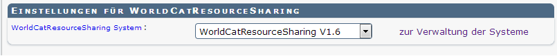 Mit Klick auf Verwaltung der Systeme können Sie direkt zur Liste der verschiedenen WorldCatResourceSharing Systeme springen. Dort legen Sie entweder ein System neu an oder Sie ändern dort einen bereits angelegten Peer. Eine ausführliche Beschreibung zur Konfiguration eines Peers des Typs WorldCatResourceSharing finden Sie im Basishandbuch.