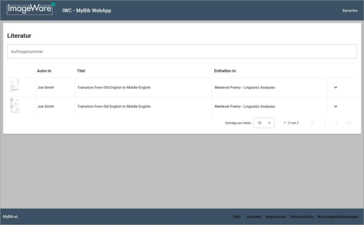 In der Dokumentansicht können Sie die Titeldaten des Dokumentes kontrollieren oder auf das Thumbnail des Deckblattes (der ersten Seite) klicken, um dies zu vergrößern. Dort können Sie die Daten Ihrer Bestellung einsehen. Alle weiteren Seiten des Dokumentes sind am Bildschirm verpixelt dargestellt, beim Ausdruck wird die Verpixelung entfernt und die Scans werden lesbar sein.